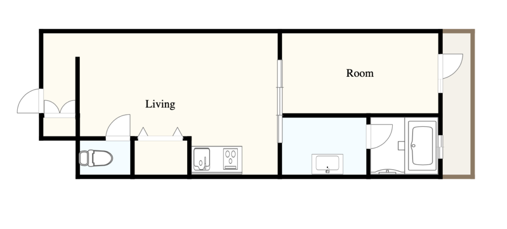 1Rを大きくしたような奥行きのある造りで家具の配置や大きさに困らないのも嬉しいポイント。