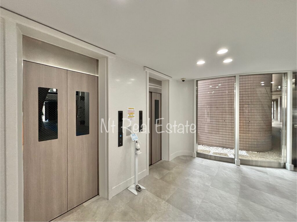 建物エントランスから白を基調としたオシャレな空間を演出。